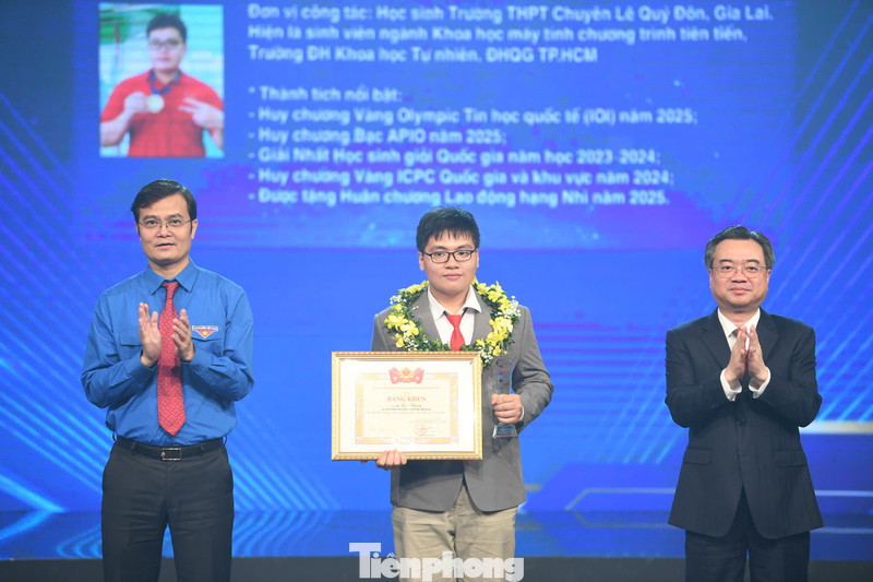 Ông Nguyễn Thanh Nghị - Ủy viên Bộ Chính trị, Bí thư Trung ương Đảng, Trưởng Ban Chính sách, Chiến lược Trung ương và anh Bùi Quang Huy - Ủy viên Trung ương Đảng, Bí thư thứ nhất Trung ương Đoàn, Chủ tịch Hội đồng Giải thưởng trao biểu trưng, Bằng khen của Trung ương Đoàn cho các Gương mặt trẻ Việt Nam tiêu biểu năm 2025.