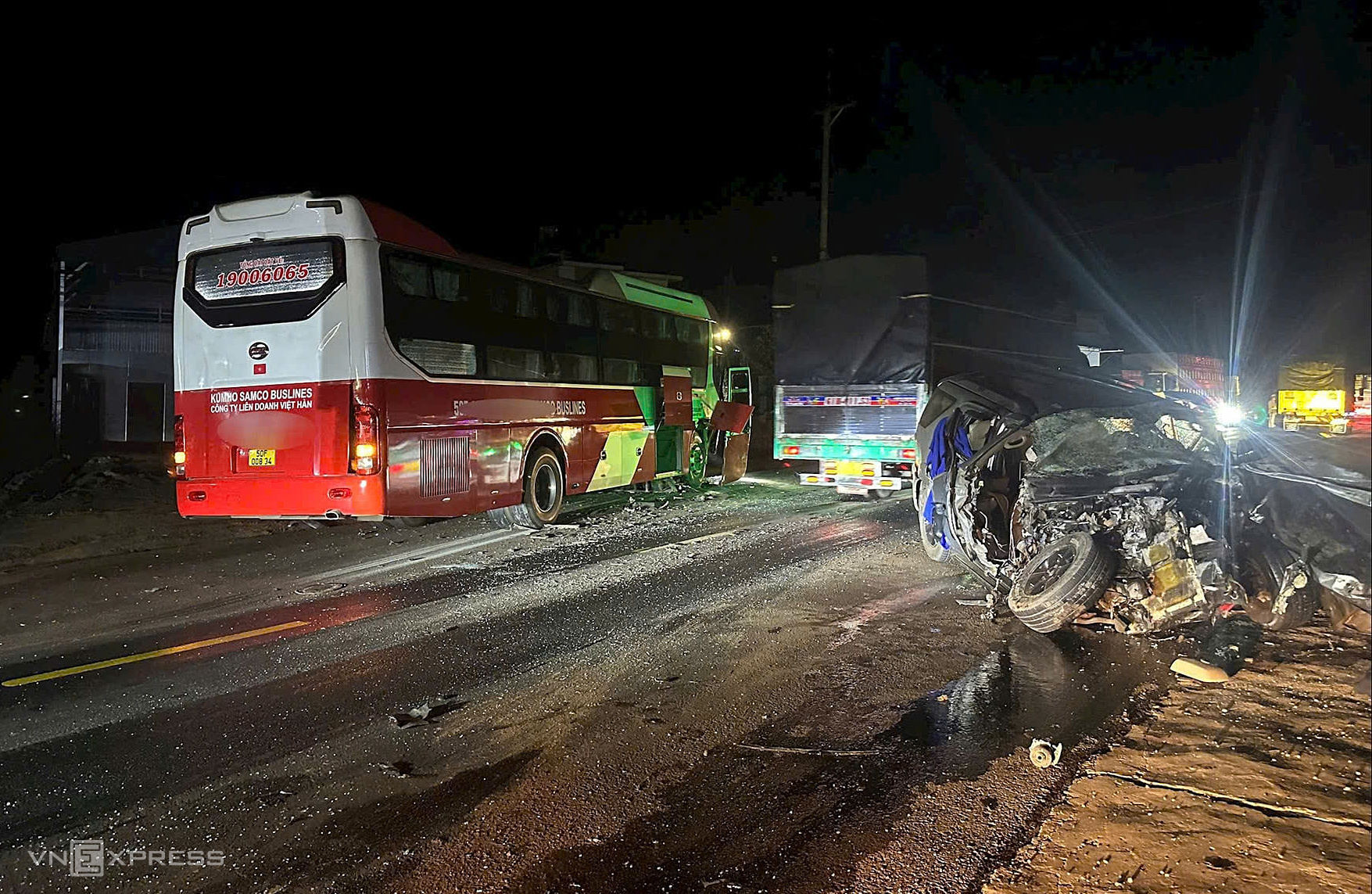 Va chạm trực diện giữa xe khách và ôtô 7 chỗ trên đường Hồ Chí Minh khiến hai nạn nhân tử vong, một người bị thương, rạng sáng 28/11.