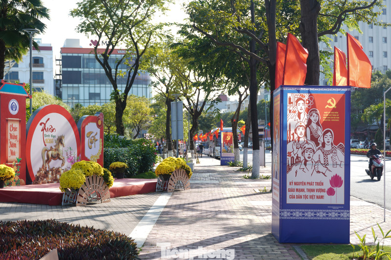 Báo điện tử Tiền Phong Dạo quanh các tuyến đường lớn như Bạch Đằng, Trần Phú, Hùng Vương, Lê Duẩn, Nguyễn Văn Linh, Phạm Văn Đồng…, dễ dàng cảm nhận nhịp điệu rộn ràng của mùa xuân đang về. Những dải cờ đỏ sao vàng tung bay trong gió, xen lẫn các cụm hoa tươi, đèn lồng và linh vật năm mới được bài trí bắt mắt. 1
