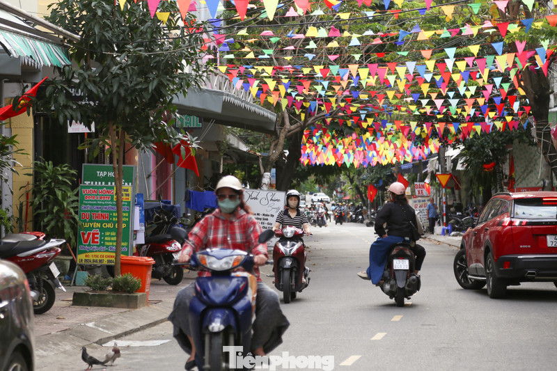 Báo điện tử Tiền Phong Các tuyến đường, ngõ nhỏ rực rỡ màu cờ, tạo nên không gian rực rỡ, ngập tràn không khí Tết. Buổi tối, những tuyến phố lên đèn lung linh tạo nên một diện mạo mới mẻ. 1