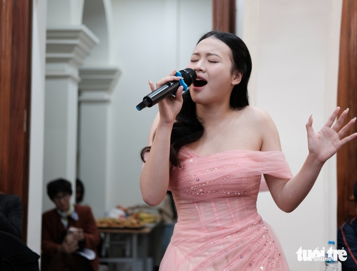 Nguyễn Thụy Hải Anh, Huy chương vàng tại Yoshine Music Festival 2024, vừa giành giải Nhất phong cách nhạc nhẹ tại cuộc thi Tiếng hát Hà Nội 2025, hát Thu cạn tại buổi gặp gỡ - Ảnh: ĐẬU DUNG
