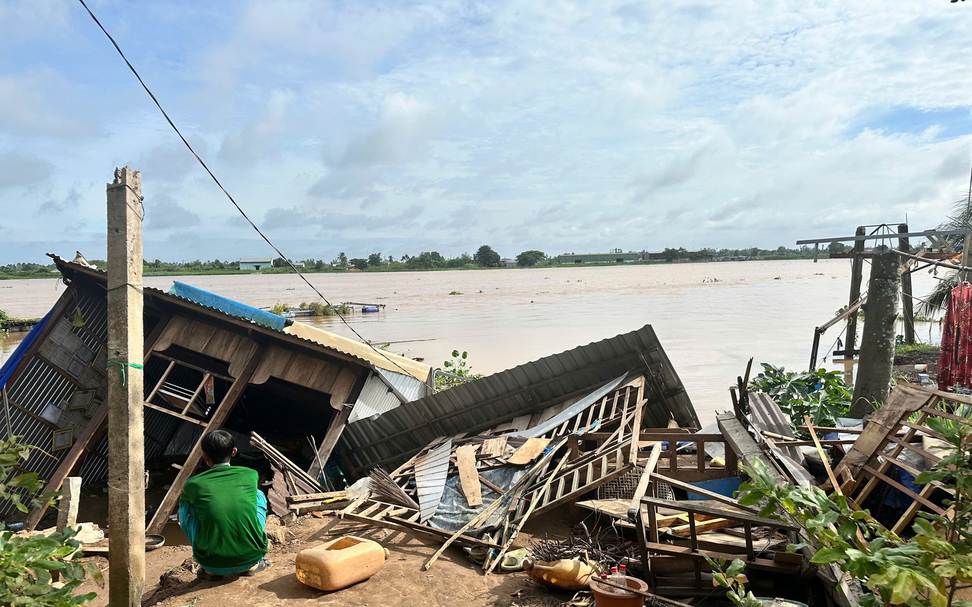 Sáng 11-4, ông Ngô Công Thức - Phó Chủ tịch UBND tỉnh An Giang - khảo sát hiện trường sạt lở -Ảnh: MINH KHANG"Dự kiến trong ngày 11-4 doanh nghiệp sẽ tập kết thiết bị, vật tư để triển khai các biện pháp khắc phục sạt lở", lãnh đạo UBND xã Vĩnh Thạnh Trung thông tin.