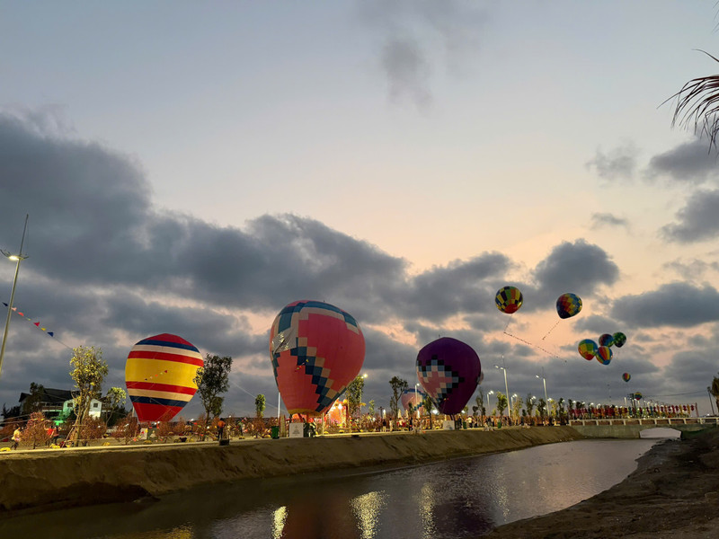 22 khinh khí cầu cỡ lớn đủ màu sắc tạo nên một bầu trời rực rỡ, mang đến cơ hội ngắm toàn cảnh biển, rừng ngập mặn và cung đường hoa xuân từ trên cao cho du khách tại sự kiện. (Ảnh: PV/Vietnam+)Song song đó, phần “hội” được nâng tầm với Lễ hội Khinh khí cầu lần đầu tiên có mặt trong dịp Tết Nguyên đán với 22 khinh khí cầu cỡ lớn đủ màu sắc tạo nên một bầu trời rực rỡ, mang đến cho du khách cơ hội ngắm toàn cảnh biển, rừng ngập mặn và cung đường hoa xuân từ trên cao – một góc nhìn chưa từng có về “thiên đường xanh” Cần Giờ.