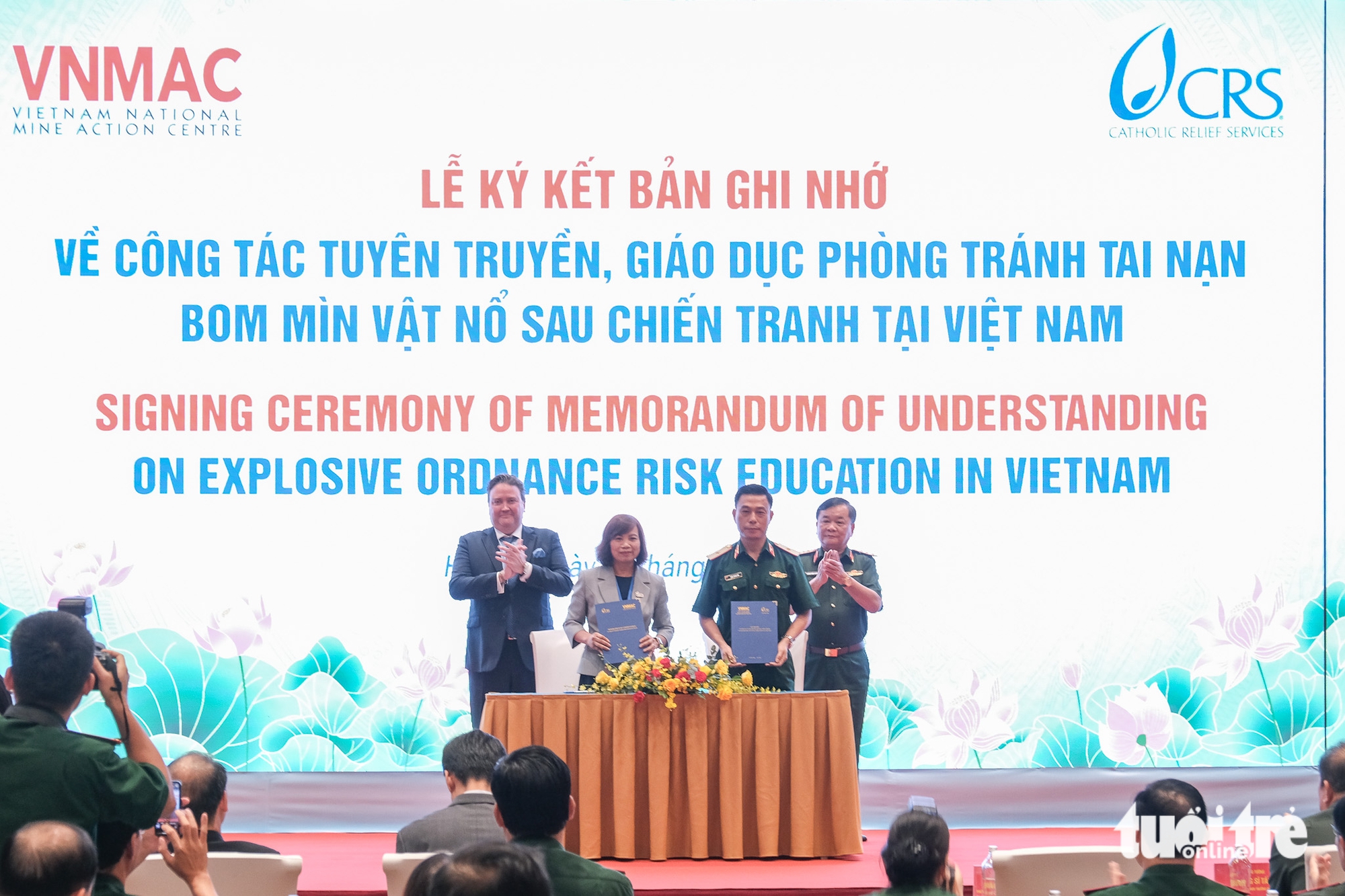 Thượng tướng Hoàng Xuân Chiến và Đại sứ Mỹ Marc Knapper chứng kiến lễ ký kết bản ghi nhớ về tuyên truyền, giáo dục phòng tránh tai nạn bom mìn vật nổ sau chiến tranh ở Việt Nam - Ảnh: HÀ QUÂNThứ trưởng Bộ Ngoại giao Đặng Hoàng Giang đánh giá sự giúp đỡ, hỗ trợ của các nước, trong đó có Mỹ, Nhật Bản, Hàn Quốc, Vương quốc Anh… vừa giúp tái thiết sinh kế của nhiều người dân, vừa là biểu tượng sinh động cho tình hữu nghị, cảm thông sâu sắc của cộng đồng quốc tế.