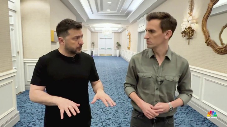 Tổng thống Ukraine Volodymyr Zelensky trả lời phỏng vấn Đài NBC News khi có mặt tại Qatar - Ảnh: NBC NEWSCuối tuần qua Tổng thống Ukraine Volodymyr Zelensky tiết lộ các vệ tinh của Nga đã chụp ảnh một căn cứ không quân của Mỹ tại Saudi Arabia vào ba thời điểm khác nhau trong những ngày trước khi Iran tấn công địa điểm này.