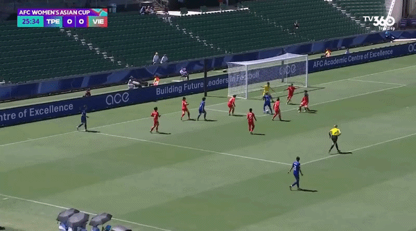 26': Xuất phát từ một pha tấn công bên cánh trái, Đài Bắc Trung Hoa đã mở tỷ số. Bóng đập xà ngang bật ra và Su Yu Hsuan dứt điểm nhẹ nhàng bằng đầu vào lưới trống. Đài Bắc Trung Hoa dẫn 1-0.