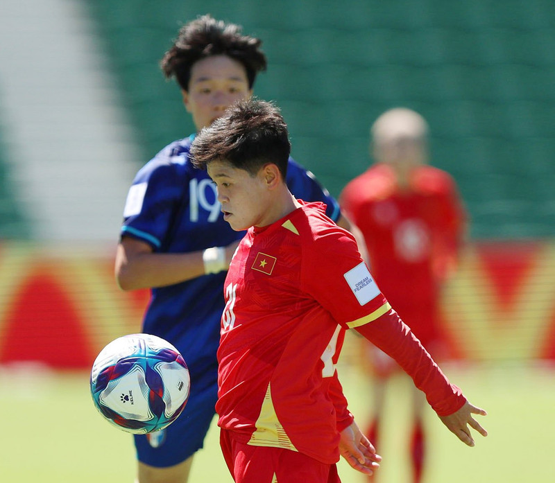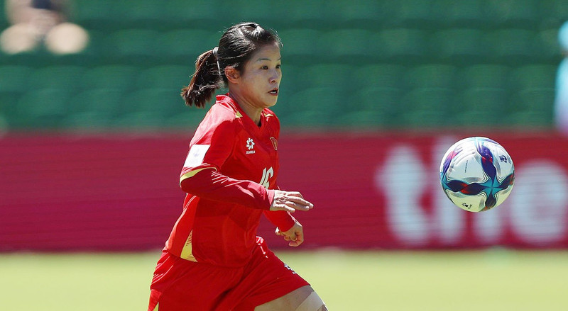 10': Tuyển nữ Việt Nam để hổng hành lang trái. Chen băng xuống thoải mái và tung ra cú sút căng. Bóng đi vọt xà.
