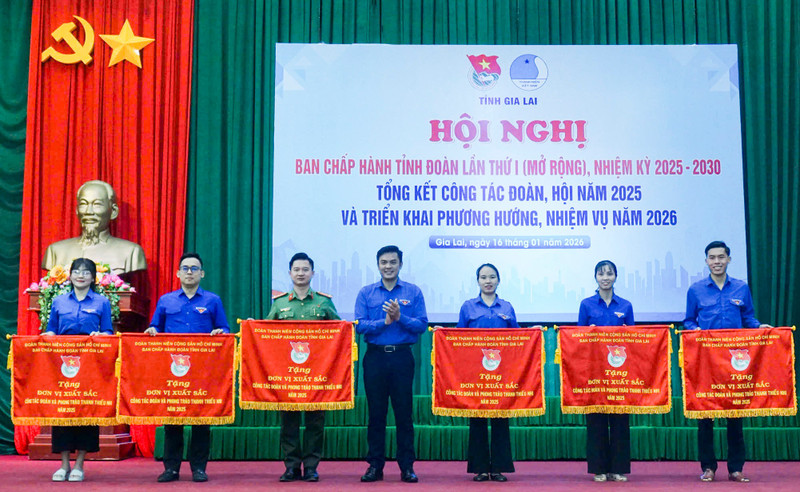 Tỉnh Đoàn Gia Lai tặng Cờ thi đua cho 6 đơn vị có thành tích xuất sắc.Tại hội nghị, Tỉnh Đoàn Gia Lai trao Cờ thi đua cho 6 đơn vị có thành tích xuất sắc; trao Bằng khen cho 26 đơn vị và 41 cá nhân hoàn thành xuất sắc nhiệm vụ công tác Đoàn và phong trào thanh thiếu nhi năm 2025.