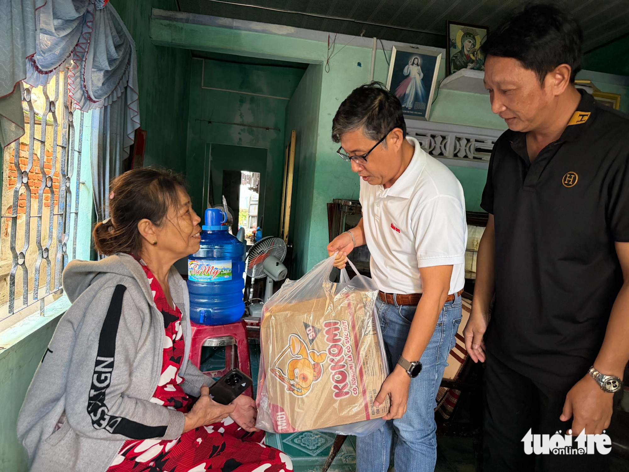 Cạnh nhà bà Sen là bà Lê Thị Phương (72 tuổi), nhà ông Trần Đúng (88 tuổi) cũng bị thiệt hại nặng sau lũ. Nhận các phần quà của báo Tuổi Trẻ và Đảng ủy, chính quyền phường Đông Hòa, bà Phương, ông Đúng cũng như những người già, neo đơn, gia đình khó khăn tại đây rất cảm động.
