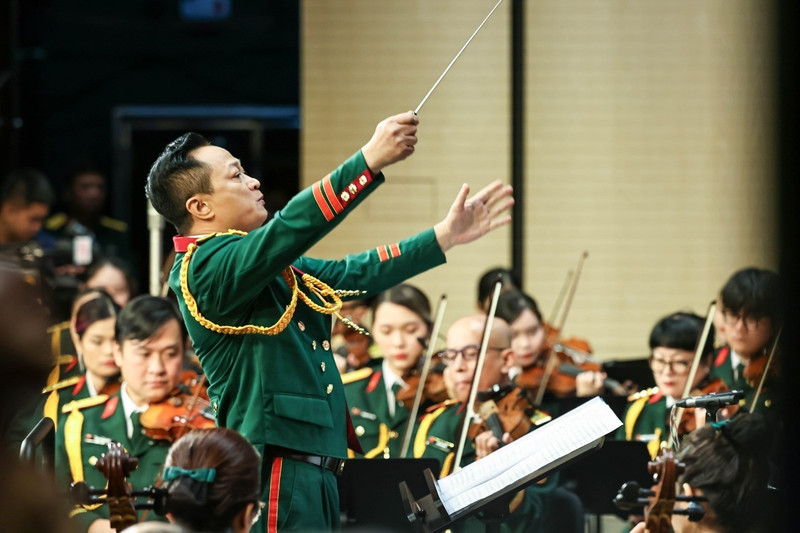Nghệ sỹ Nhân dân Nguyễn Xuân Bắc chỉ huy Dàn nhạc Giao hưởng Quân đội. (Ảnh: PV/Vietnam+)“Ngày bầu cử, bên cạnh khoảnh khắc bỏ lá phiếu còn là cảm giác mọi người cùng hòa vào nhau trong niềm tin và sự hứng khởi. Một không khí đẹp đẽ, chân thành, lan tỏa rất lâu sau ngày hội toàn dân,” nhà thơ Lữ Mai xúc động nhớ lại.