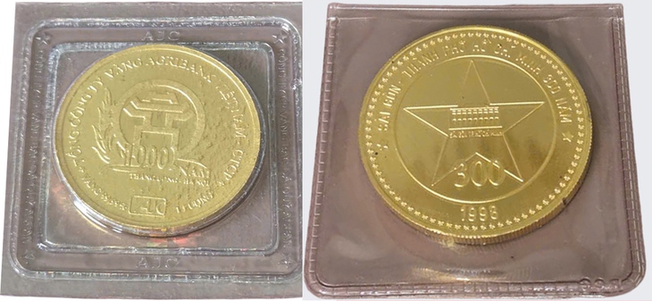 Hai đồng tiền vàng: kỷ niệm 1.000 năm Thăng Long (trái) và kỷ niệm 300 năm Sài Gòn - TP.HCM trong sưu tập của anh La Hưng - Ảnh: PHÚC TIẾNCứ tưởng chừng sẽ không còn được gặp lại kỷ vật vàng lá Kim Thành khi thời nay "cây vàng" đã hóa thành vàng miếng xinh xắn, được bọc plastic cẩn thận, thế nhưng khi biết tôi hay tìm tòi và viết về Sài Gòn cũ mới, một đồng môn trường Petrus Ký xưa (tức THPT chuyên Lê Hồng Phong TP.HCM) đã giới thiệu một nhà sưu tập vàng trong nhóm "chơi hàng xưa" của anh.