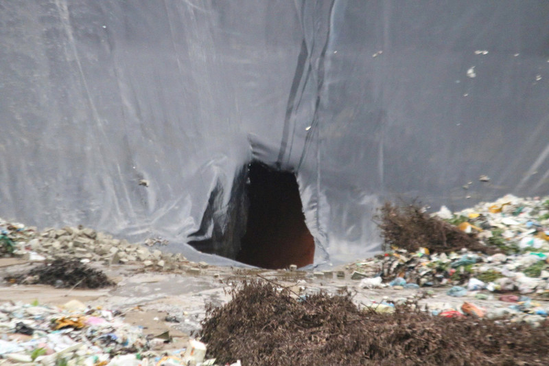 Trước đó, trưa 30/7, do mưa lớn kéo dài gây tích tụ nước và tạo áp lực lớn nên hố chứa rác thuộc dự án Khu liên hiệp xử lý rác thải rắn liên hợp Ngọc Hồi (tỉnh Quảng Ngãi) đã bị thủng một lỗ đường kính khoảng 2m, sâu hơn 10 m, xuyên qua thân bờ bao ô chứa rác.