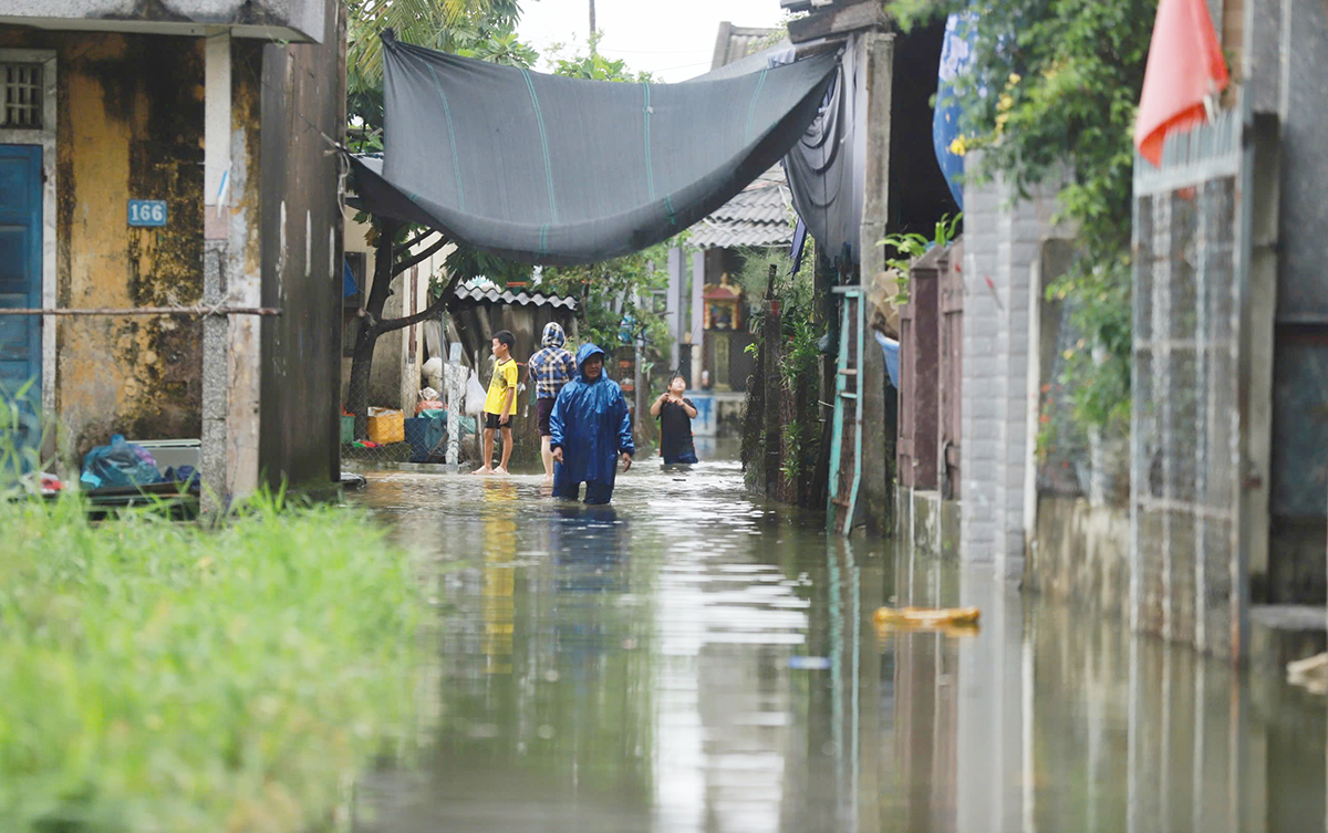 Mưa hai ngày qua khiến nhiều tuyến đường liên thôn, liên xã ở TP Huế, Quảng Trị ngập 0,3-1,1 m, một số khu dân cư tạm thời bị chia cắt.