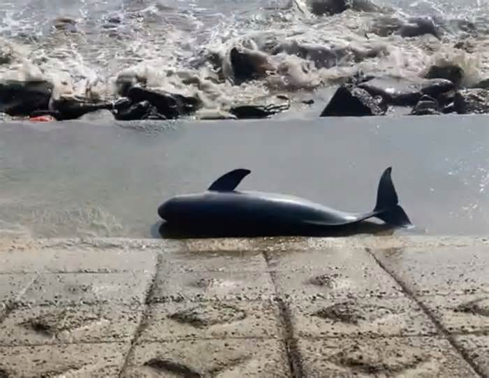 Xác cá voi khoảng 40kg trôi dạt vào bờ biển ở Quảng Trị. Ảnh: Hải PhươngQuảng Trị - Người dân phát hiện xác cá voi trôi dạt vào bờ biển ở xã Hòa Trạch, chính quyền phối hợp chôn lấp theo phong tục địa phương.