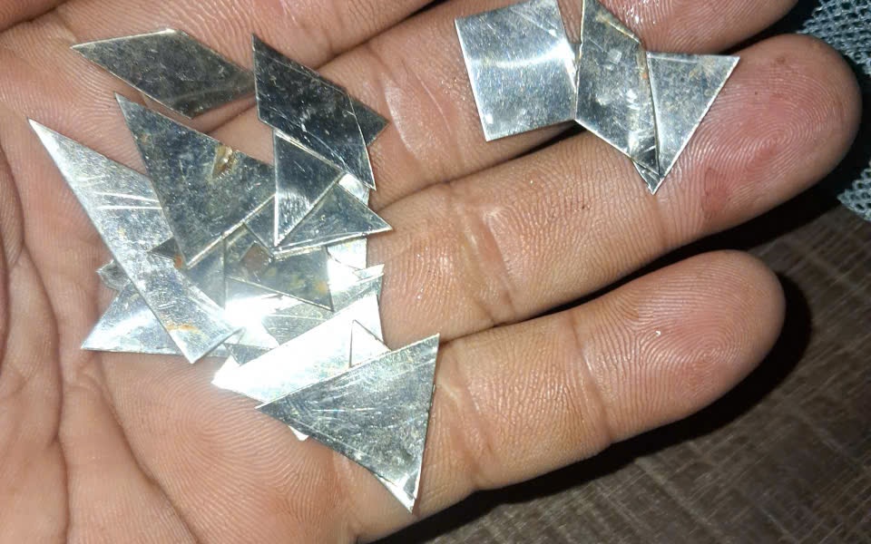 Người đàn ông sau đó lấy trong túi ni lông treo trên xe ra hai cây đinh nhọn bằng sắt, được ghim vào một miếng bìa các tông hình vuông nhỏ, mục đích khi đặt xuống đường cây đinh sẽ không bị ngã. Cây đinh sắc nhọn còn được cố định vào miếng các tông bằng cách cột sợi dây thun ở phần đuôi để không bị tụt ra.