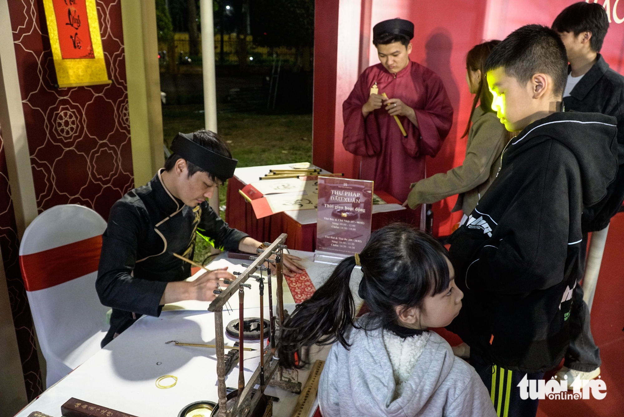 Du khách xin chữ đầu năm - Ảnh: M.PHÚC"Chương trình năm nay cũng hướng tới việc đưa các giá trị Tết truyền thống bước vào đời sống đương đại thông qua nghệ thuật sơn mài, hội họa, thời trang, trình diễn văn hóa, cùng các câu chuyện về phong tục, lễ hội và ẩm thực. Qua đó góp phần giúp thế hệ trẻ và du khách quốc tế hiểu sâu hơn, yêu hơn những giá trị văn hóa Việt Nam trong dòng chảy hiện đại", bà Giang chia sẻ.