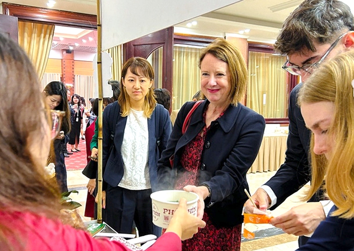 Đây không chỉ là dịp tri ân đến bạn bè quốc tế mà còn là cơ hội để giới thiệu văn hóa ẩm thực Việt Nam. Tại đây, Phở Thìn Bờ Hồ đã phục vụ gần 200 khách quốc tế bằng những tô phở ngon, nóng hổi nhất trong thời tiết lành lạnh của Hà Nội.